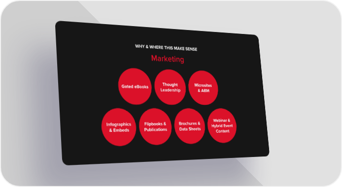 WHY & WHERE THIS MAKE SENSE Marketing Thought Microsites Gated eBooks Leadership & ABM Webinar & Infographics Flipbooks & Brochures & Hybrid Event & Embeds Publications Data Sheets Content
